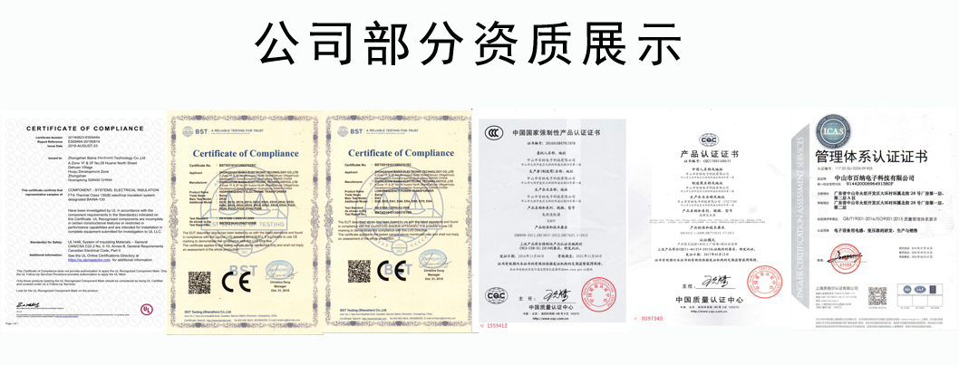 公司现已全面通过ISO9001:2015质量管理体系认证、CQC、3C等多项认证及CE、UL等国际安规认证。